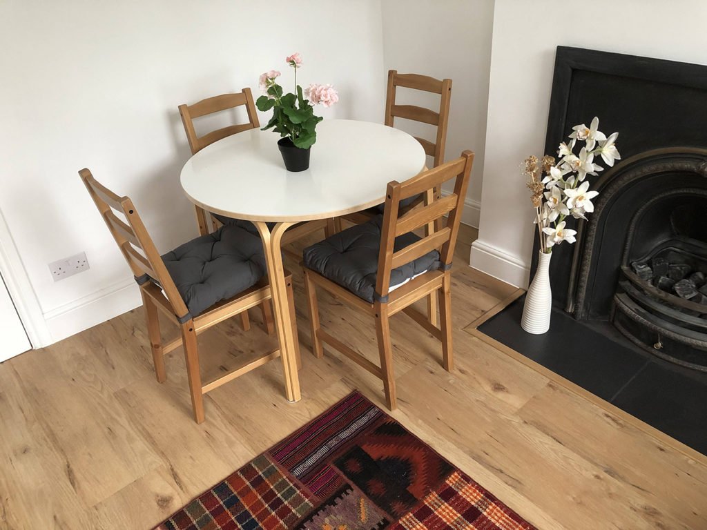 General features: New flat created to a very high standard. Fully double-glazed which virtually eliminates road noise. Gas combi boiler & central heating. Secure own entrance – main entrance through front door on first floor. Photos below show furniture and fittings as at December 2020. New high efficiency boiler installed. Utility bills around £30 per month on average.
