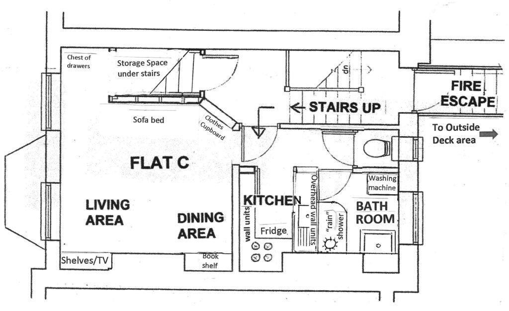 Flat C (first floor flat): 24 Sqm – a studio flat – suitable for single person or couple – double bed only.
