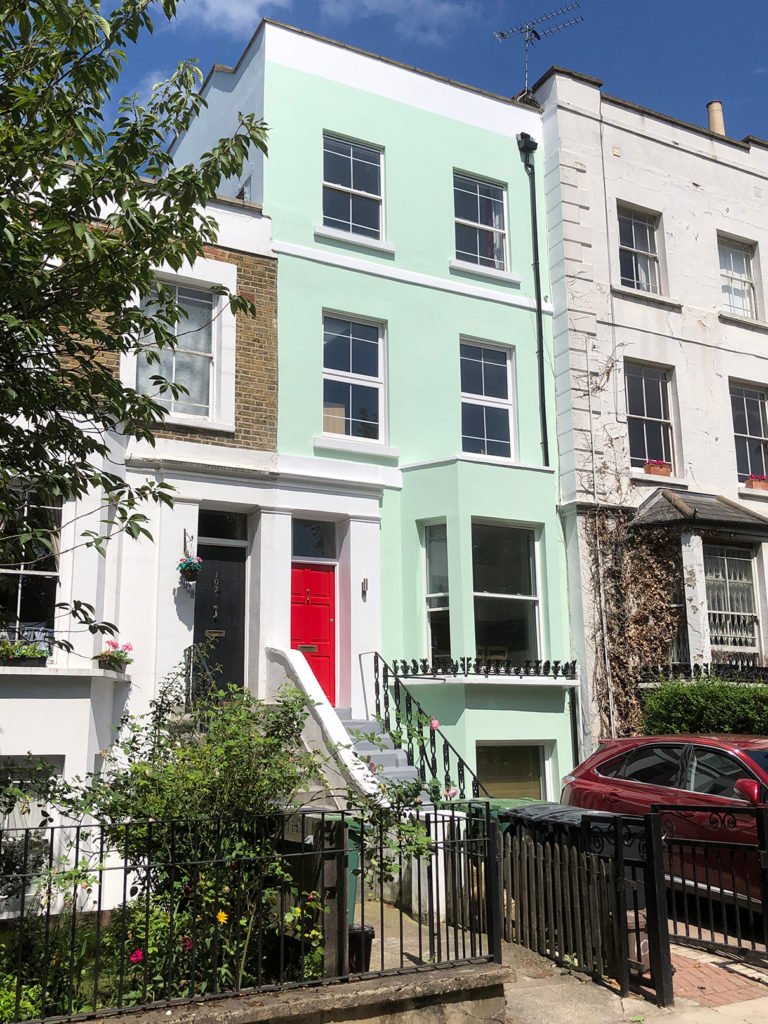 It has four flats, each with a different character. Each has a secure entrance with a registered front door key which cannot be duplicated. Located just 5 minutes from Kentish Town tube (Northern Line & National Rail), Bus routes (24, 46, 134, 214, 393, C2) and shops, it is well placed and also nearby to Hampstead Heath, Highgate and Camden Town.