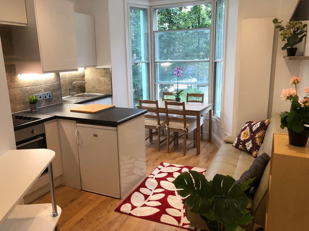 First floor flat: 24 Sqm. A studio flat – suitable for single person or couple.