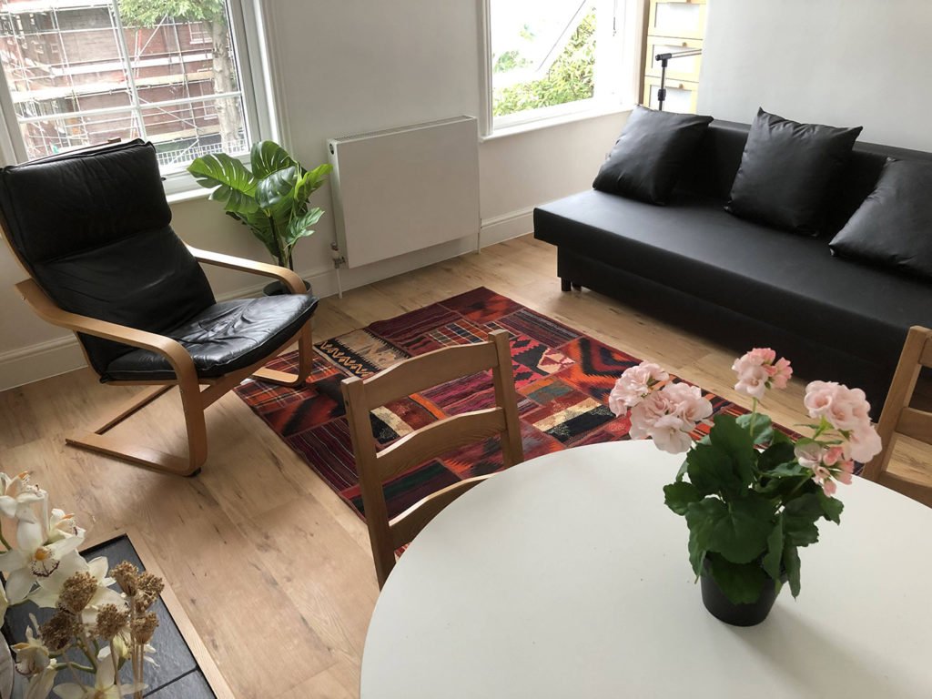 Garden flat: 55 Sqm. A spacious 1 bed flat – suitable for single person or couple.